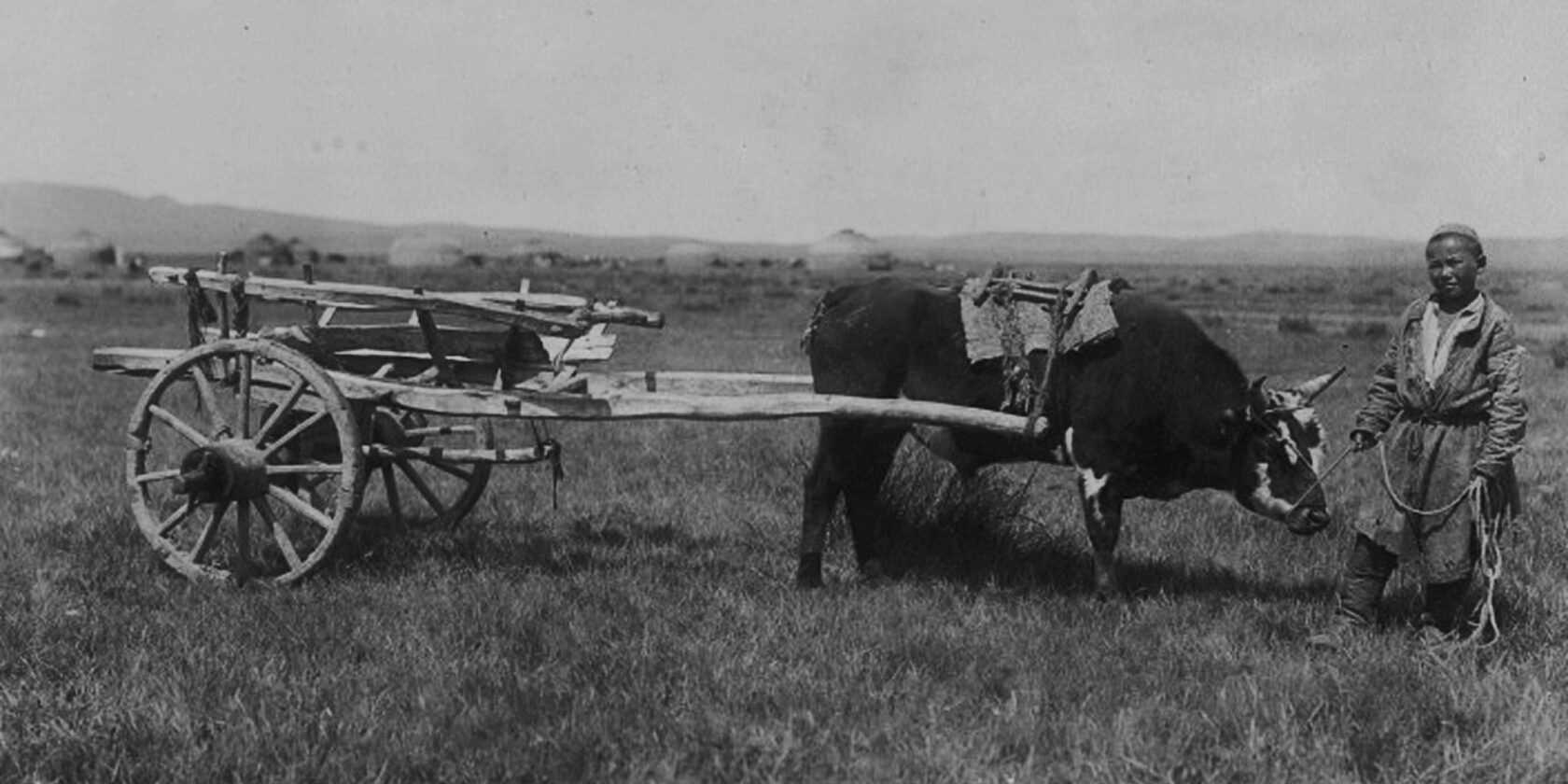 Воловья упряжка и телега-двуколка. Семипалатинская область, Казахстан. Фото Константинa Де-Лазари, 1899 год